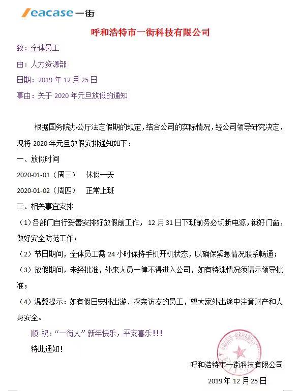 【通知】數(shù)巢信息關(guān)于2020年“元旦”放假的安排