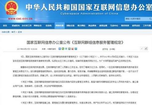 至于互聯(lián)網(wǎng)群組的具體定義,相關(guān)負(fù)責(zé)人表示,互聯(lián)網(wǎng)群組即是互聯(lián)網(wǎng)用戶通過(guò)互聯(lián)網(wǎng)站、移動(dòng)互聯(lián)網(wǎng)應(yīng)用程序等平臺(tái)建立的,用于群體在線交流信息的網(wǎng)絡(luò)空間,如微信群、QQ群、微博群、貼吧群、陌陌群、支付寶群聊等各類互聯(lián)網(wǎng)群組。