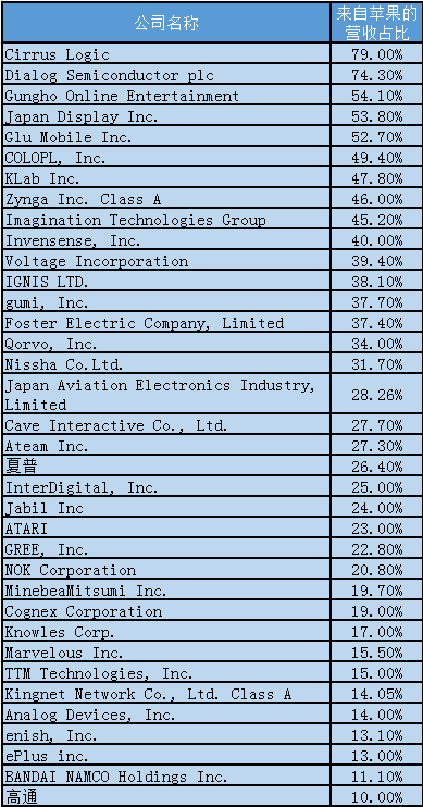 新浪科技訊 北京時間1月1日上午消息,眾所周知,蘋果擁有一個龐大的供應(yīng)鏈,由于產(chǎn)品線非常復(fù)雜,該公司需要大量外部供應(yīng)商提供支持。根據(jù)FactSet的數(shù)據(jù)顯示,目前有36家上市公司都非常依賴于蘋果的訂單,他們當中至少10%的營收都來自于這家iPhone廠商。