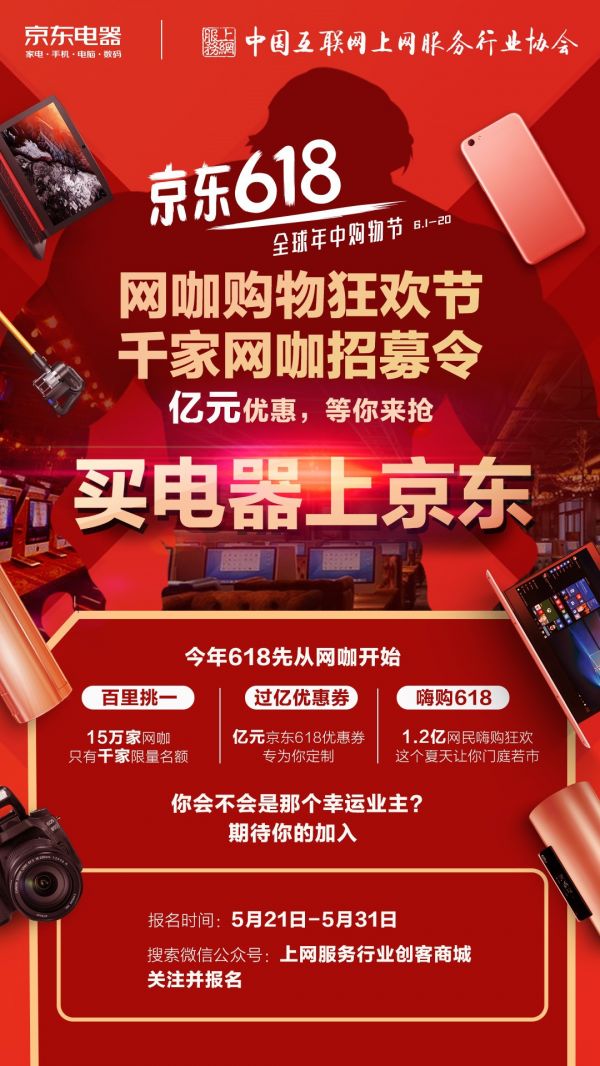 比如告訴他,京東618期間會(huì)投放億優(yōu)惠券給千家網(wǎng)咖,幫助網(wǎng)咖招攬更多的生意。想?yún)⒓拥骄〇|618網(wǎng)咖購(gòu)物狂歡節(jié)中,還可以搜索微信公眾號(hào)“上網(wǎng)服務(wù)行業(yè)創(chuàng)客商城”,關(guān)注并聯(lián)系報(bào)名,或者根據(jù)自己網(wǎng)咖所在地,直接與京東網(wǎng)絡(luò)服務(wù)站項(xiàng)目區(qū)域負(fù)責(zé)人進(jìn)行聯(lián)系報(bào)名。